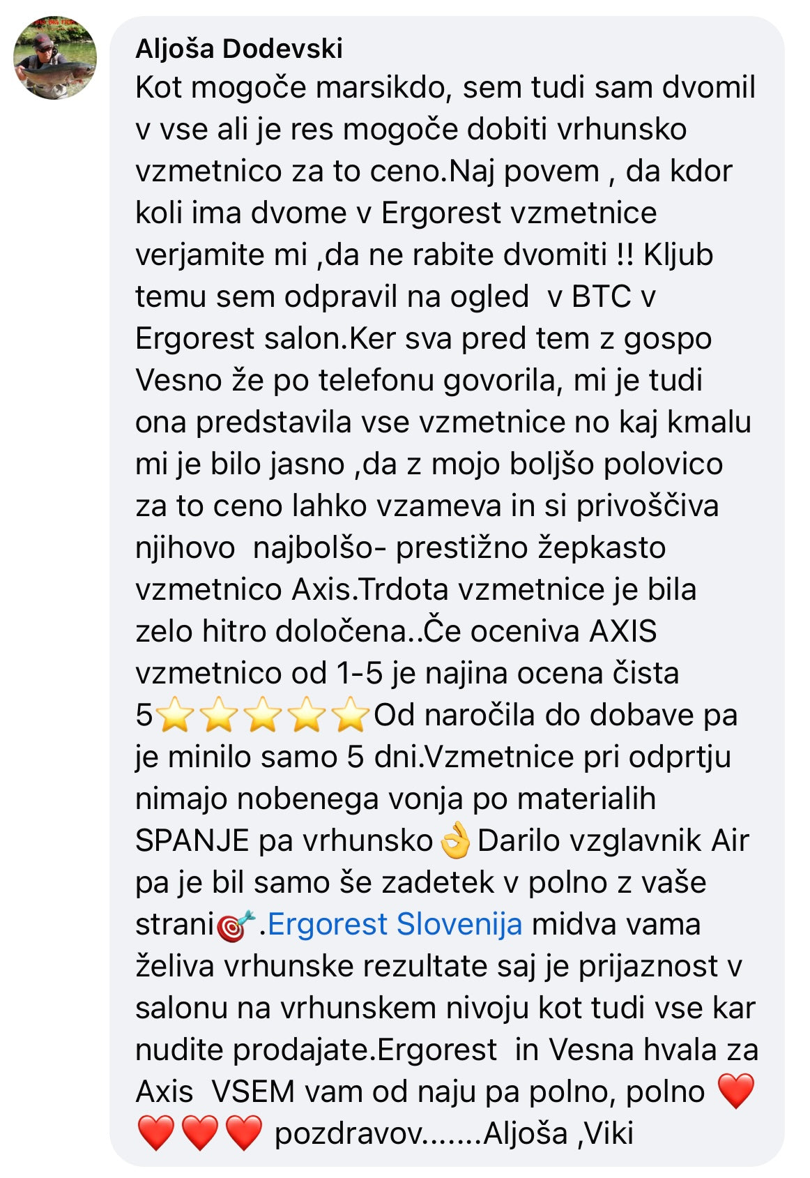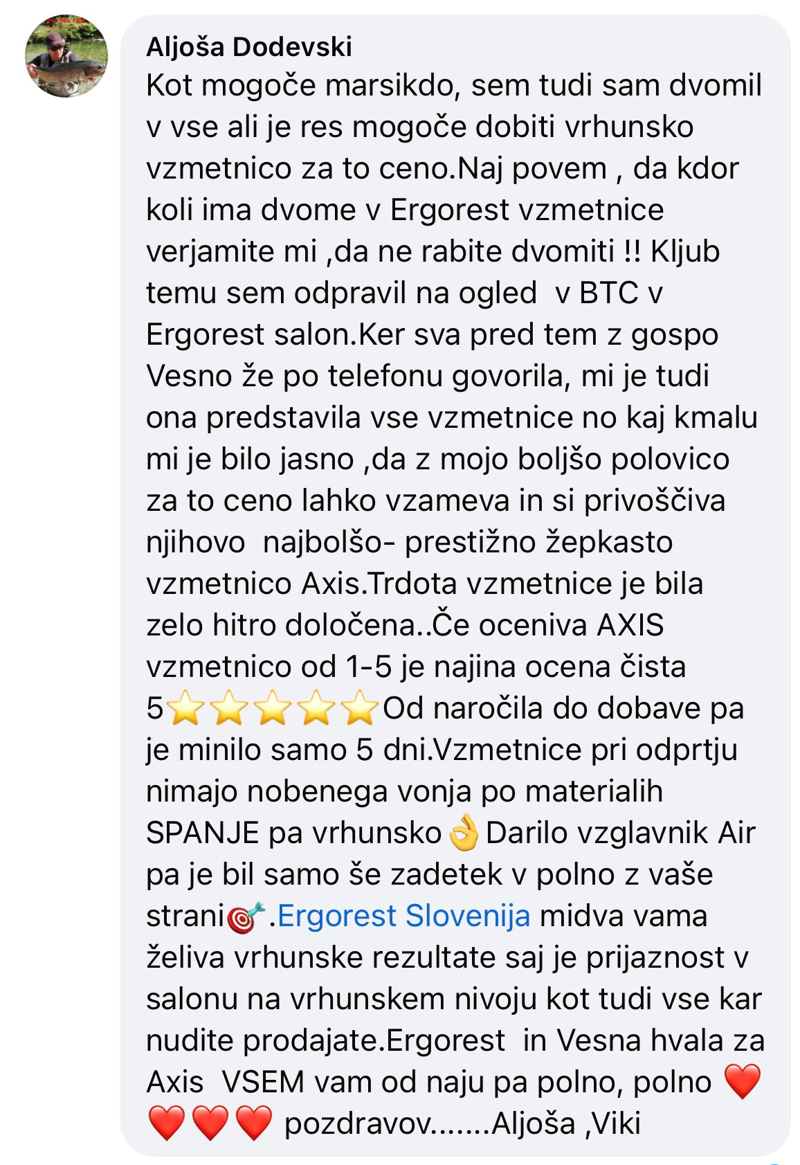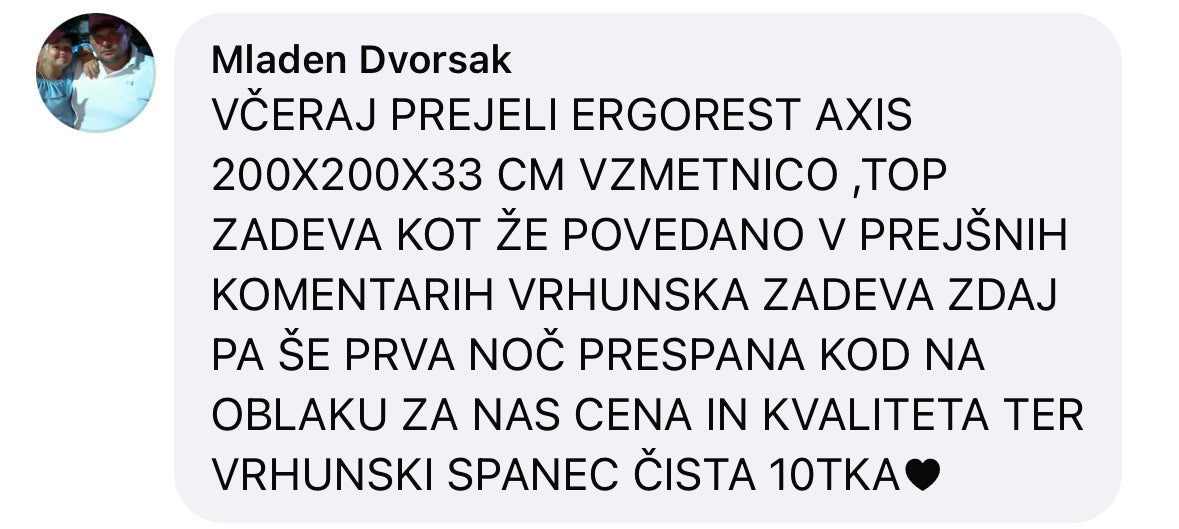 Priporocam salon Ergorest! Imajo ogromno izbire ležišč, pa tudi res prijazne prodajalce, ki znajo svetovat. Jaz sem si vzela največjo posteljo Axis Ultra Firm – top je, ker ima poletno in zimsko stran ter merino volno. Udobje je noro dobro, pa še občutek imaš, da res dobiš tisto, kar rabiš. Res super izkušnja!
