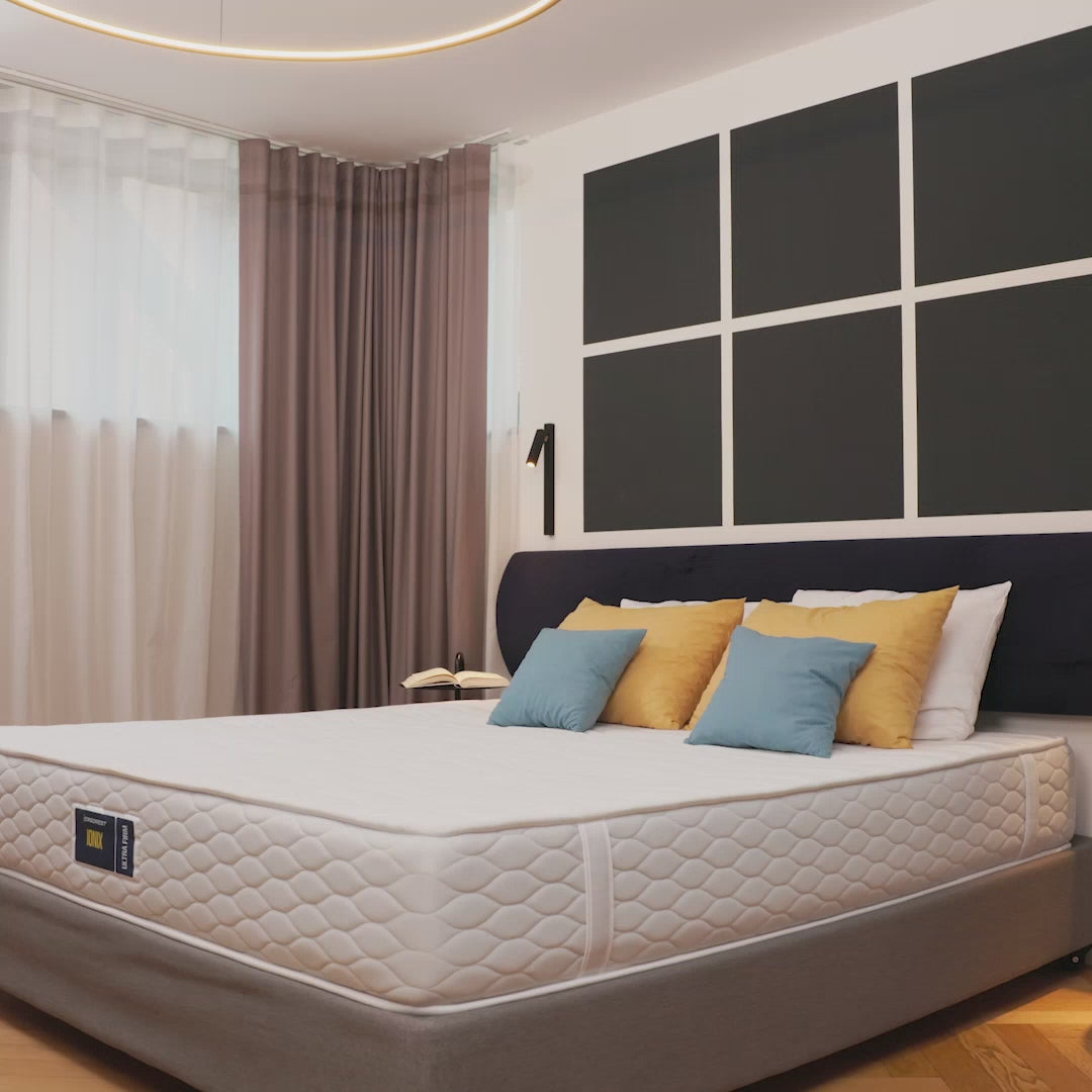 ULTRA FIRM je najtrša različica Ionixa, izdelana za vse, ki iščejo brezkompromisno podporo brez občutka pogrezanja. Priporočena je za uporabnike z višjo telesno težo (nad 90 kg), za vse, ki spijo na hrbtu ali trebuhu, ali za tiste, ki preprosto uživajo v trdni in stabilni podlagi. Zaradi dodatne ojačitve nosilne plasti in odlične bočne opore sistem EdgeLock™ zagotavlja, da vzmetnica ostane v popolni formi tudi po dolgotrajni uporabi.